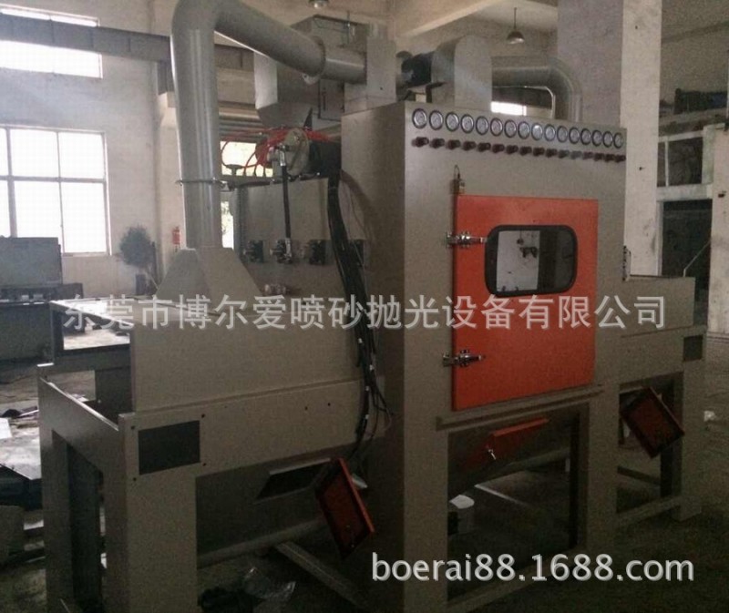 特点描述 | 1、本机为平面自动输送式喷砂专用机、输送速度可用变频数字控制、喷砂速度快、加工品质稳定、简单。 2、操作时将工件放在输送带上、喷砂作业自动完成,十分简单方便。 3、喷枪摆动弧度可调整大小。 4、喷枪与喷枪架具,可依工件尺寸摆放,并可做720度旋转,以便各种工件喷砂加工。 5、配有大型集尘机和特制砂材与粉尘旋风分离器,可分离砂与粉尘,可减少砂材消耗,环境污染。砂材可自动循环使用。 6、本机配有12组喷枪,每支喷枪具有单独控制,配有4支吹净枪,可减少加工后工件上所附砂材。 7、可依客户工件大小,形状产量而设计适合此产品专用机,此机也可以依客户工件需求配备湿式集尘设备。 |