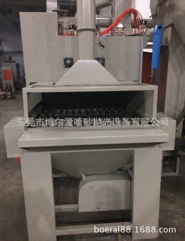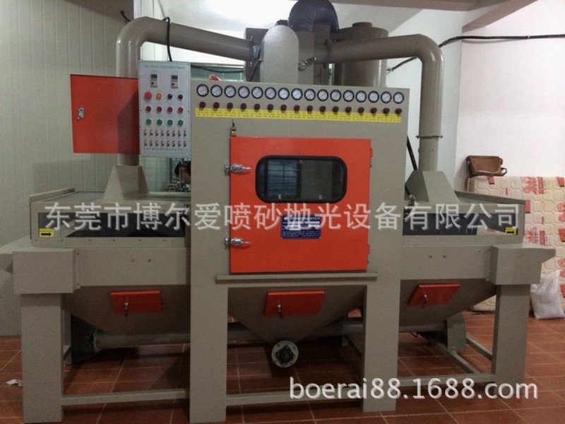 特点描述 | 1、本机为平面自动输送式喷砂专用机、输送速度可用变频数字控制、喷砂速度快、加工品质稳定、简单。 2、操作时将工件放在输送带上、喷砂作业自动完成,十分简单方便。 3、喷枪摆动弧度可调整大小。 4、喷枪与喷枪架具,可依工件尺寸摆放,并可做720度旋转,以便各种工件喷砂加工。 5、配有大型集尘机和特制砂材与粉尘旋风分离器,可分离砂与粉尘,可减少砂材消耗,环境污染。砂材可自动循环使用。 6、本机配有12组喷枪,每支喷枪具有单独控制,配有4支吹净枪,可减少加工后工件上所附砂材。 7、可依客户工件大小,形状产量而设计适合此产品专用机,此机也可以依客户工件需求配备湿式集尘设备。 |