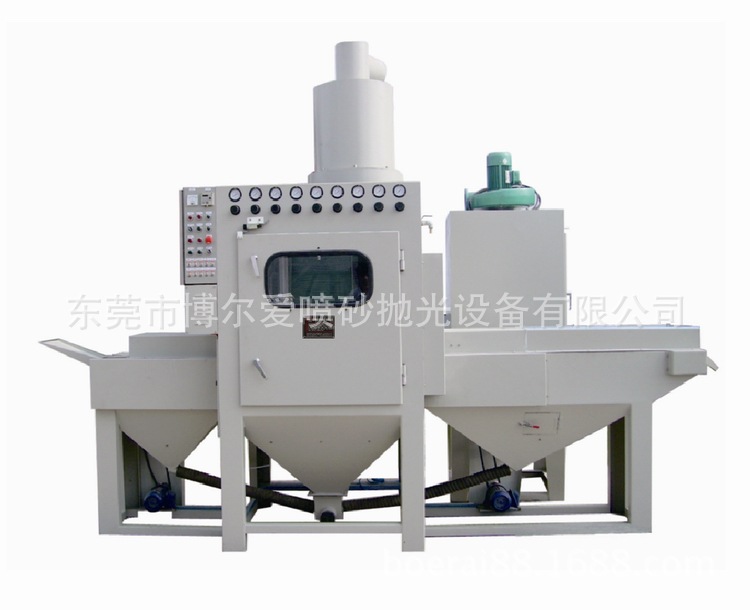 特点描述 | 1、本机为平面自动输送式喷砂专用机、输送速度可用变频数字控制、喷砂速度快、加工品质稳定、简单。 2、操作时将工件放在输送带上、喷砂作业自动完成,十分简单方便。 3、喷枪摆动弧度可调整大小。 4、喷枪与喷枪架具,可依工件尺寸摆放,并可做720度旋转,以便各种工件喷砂加工。 5、配有大型集尘机和特制砂材与粉尘旋风分离器,可分离砂与粉尘,可减少砂材消耗,环境污染。砂材可自动循环使用。 6、本机配有12组喷枪,每支喷枪具有单独控制,配有4支吹净枪,可减少加工后工件上所附砂材。 7、可依客户工件大小,形状产量而设计适合此产品专用机,此机也可以依客户工件需求配备湿式集尘设备。 |