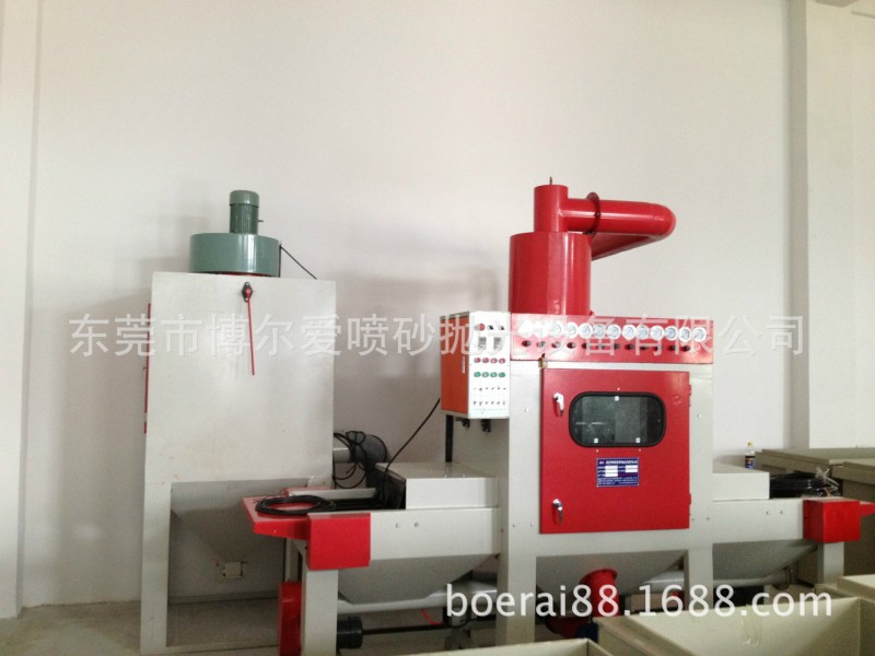 特点描述 | 1、本机为平面自动输送式喷砂专用机、输送速度可用变频数字控制、喷砂速度快、加工品质稳定、简单。 2、操作时将工件放在输送带上、喷砂作业自动完成,十分简单方便。 3、喷砂枪摆动弧度大小可调整。 4、喷枪与喷枪架具,可依工件尺寸摆放,并可做720度旋转,以便各种工件喷砂加工。 5、配有大型集尘机和特制砂材与粉尘旋风分离器,可分离砂与粉尘,可减少砂材消耗,环境污染。砂材可自动循环使用 6、本机配有6组喷枪,每支喷枪具有单独控制,配有4支吹净枪,可减少加工后工件上所附砂材。 7、依客户工件大小,形状产量而设计适合此产品专用机,此机也可以依客户工件需求配备湿式集尘设备 |