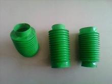 自动伸缩式油缸保护套内有钢丝圈支撑,缝制式防尘套内有PVC材料支撑,缝制式防尘套又可分为整体式、拉链式、活动粘贴式等。根据油缸、气缸的运行环境不同,采用不同的材质制作。有阻燃耐高温材料、进口材料、国内普通材料、恒温材料、低温材料。耐油、耐酸碱、耐腐蚀、耐拉伸。可防尘、防水、防油、防乳剂和化学药品。可任意弯曲伸缩。 更能适应机械设备的瞬时高温、高压、高速摩擦等的特有恶劣环境下工作。根据客户需求规格生产制作圆筒型、锥型、灯塔型等规格形状。两端连接方式有径口卡箍、两端连接法兰盘式、两端连接粘接式,法兰盘材质又分为PVC板法兰盘、金属法兰盘。