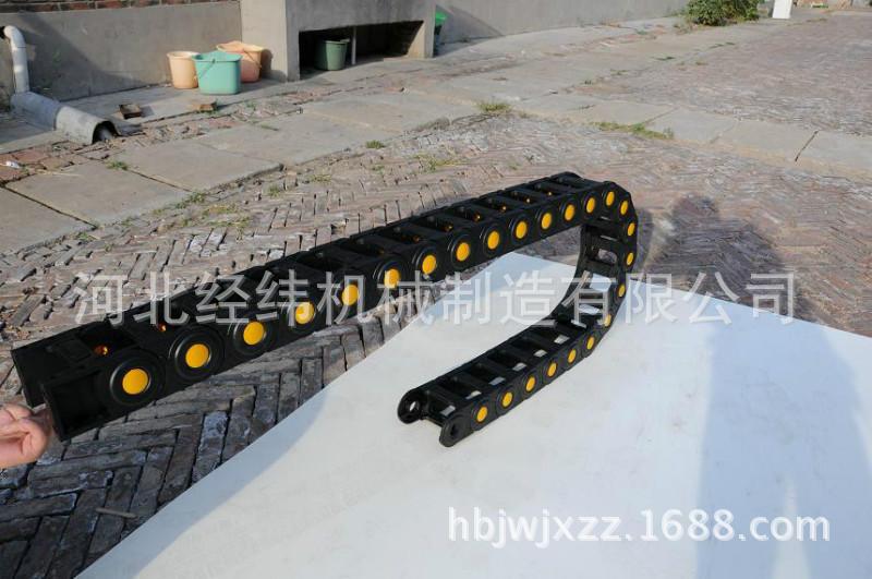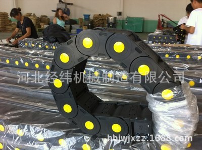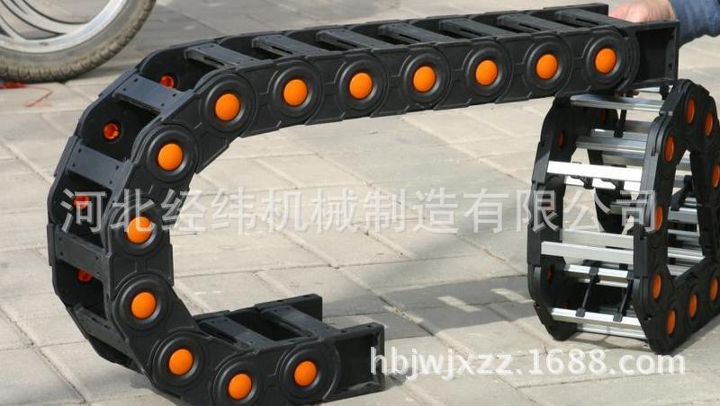 适合于使用在往复运动的场合,能够对内置的电缆、油管、气管、水管等起到牵引和保护作用,拖链每节都能打开,便于安装和维修。运动时噪音低、耐磨、可高速运动。拖链已被广泛应用于数控机床、电子设备、石材机械、玻璃机械、门窗机械、注塑机、机械手、起重运输设备、自动化仓库等。