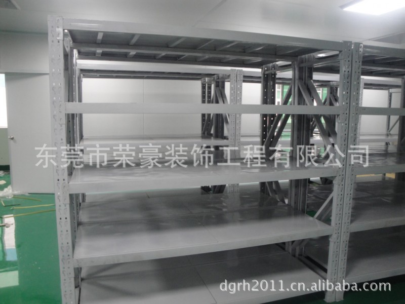 中型货架采用优质冷轧板冲压成型,经磷化和表面静电喷涂处理,结构简单,外型美观,安装拆卸方便,层距50mm可任意调节,主副无
