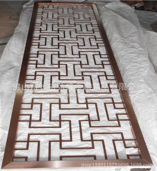 5.不锈钢屏风颜色:采用真空电镀加工,玫瑰金,古铜,香槟金,钛金,黑钛,玫瑰红,红古铜,咖啡色,青古铜等。