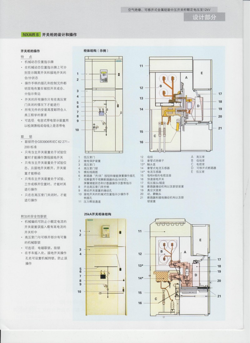 NXAIRS可移开式金属铠装中压开关柜是西门子公司设计、通过型式试验、符合GB3906及DL404、IEC62271-200标准的户内中压设备。该设备用于额定电压≤12KV、额定电流3150A及以下、额定频率50HZ的单母线分断的户内电站和配电的一次系统中。开关柜采用模块化结构,各隔室都有独立的压力释放通道、隔室钢板能承受内部电弧故障产生的气体压力。柜内采用西门子公司生产的SION免维护真空断路器,使用放心、操作简便。柜体模块化设计使快速更换各相应隔室成为可能,对可能发生的燃弧故障的回路选择性停电,使电弧被阻隔于各个隔室中,最大程度的保障人身安全,减少运行中断,显著地提高了生产力。技术特点: