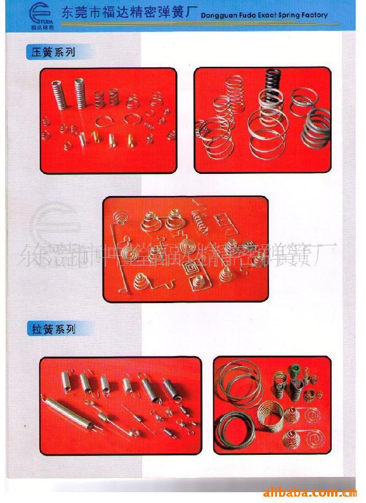 东莞福达精密弹簧有限公司有专业技术人员,可根据用户要求生产各种精密弹簧如:压簧、拉簧、扭簧、盘簧、电池簧、异型簧、工艺弹簧等。本公司坚持“质量第一,用户至上,优质服务,信守合同”的宗旨,竭诚与广大商家双赢合作,共同发展,共创辉煌!