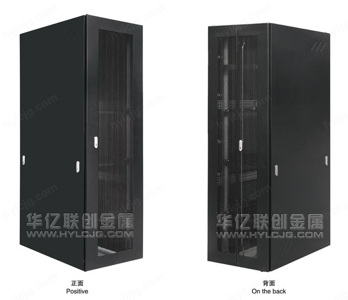 International popular black mesh door with high density, high ventilation rate hexagonal mesh front and double hexagonal mesh back door open, solving the mechanical protection, ventilation cooling, external observation machine running status of problems in three aspects;