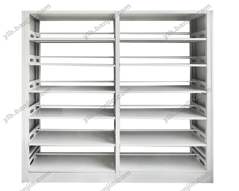底座钢结构,双立柱可带调节孔,层板高度可任意调节。全拆装,侧板冲孔减重并带有标牌镶嵌框,方便管理。层板中间设有档条,使两侧文件互不干涉,按库房高度可选配书架层数