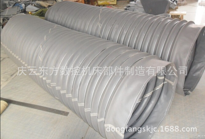 帆布伸缩保护套按加工方式,同时也考虑到不同材料适于不同加工工艺的因素,可分为两形式。 一种是钢圈支撑的丝杠防护罩,此种护罩采用多种面料,内有坚硬的钢丝圈支撑、能在高温110℃、低温-40℃之间正常工作。可有效的防尘、防水、防油、防乳剂和化学药品,此护罩具有外形工整,不易变形的特点,基于它的严密,坚挺,此护罩且可用于众多机械的通风、除尘等。本产品的灵活不但在材料可选,更在于它可以根据的具体要求来确定所需直径和长度。 另一种就是缝制丝杠防护罩,圆形丝杠防护罩是经冲压的圆片缝制成,相临的两个内边,两个外边缝合在一起,通过缝制就可以达到比较好的外形稳定及水平方向上的牢固。材料可根据工作环境的不同有多种选择。