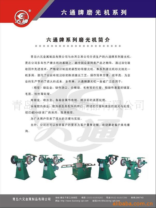(一 抛光机厂:自主研发生产六通牌砂带磨光机、砂带抛光机,散热器打磨机,内抛机,圆管磨光机,圆管内孔磨光机,石油钻杆抛光机,,