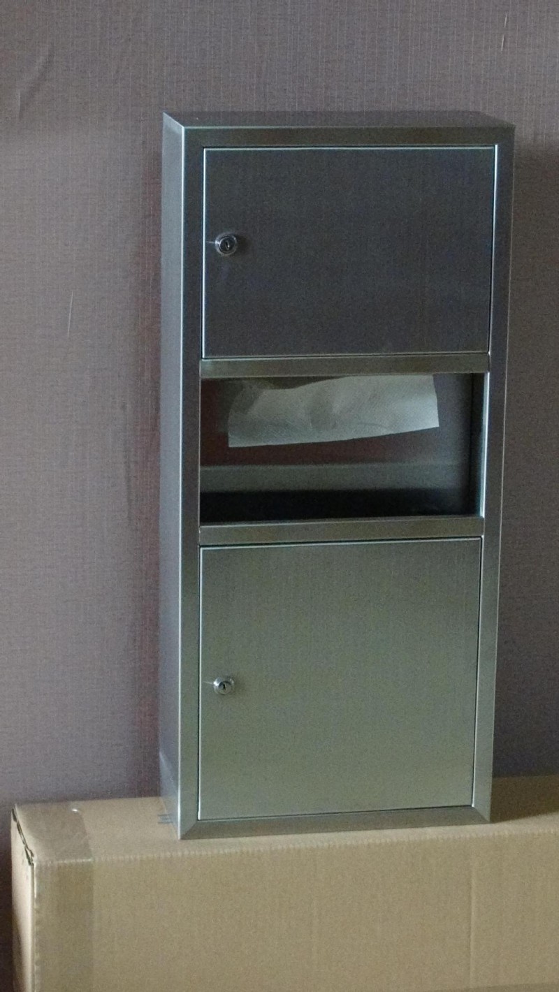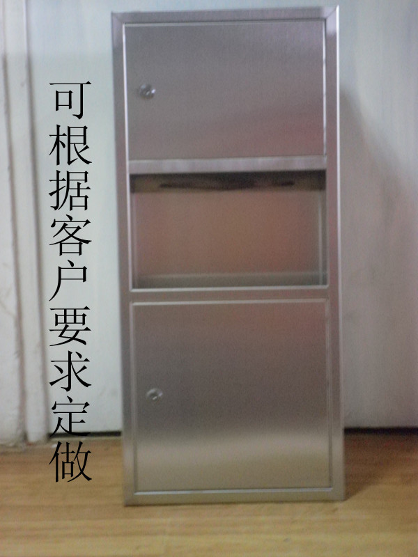此款为1200高,340宽,150厚的暗装式带垃圾桶手纸箱