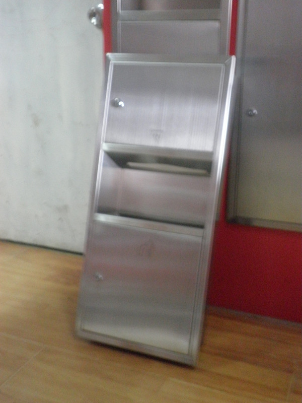 此款为1200高,340宽,150厚的暗装式带垃圾桶手纸箱