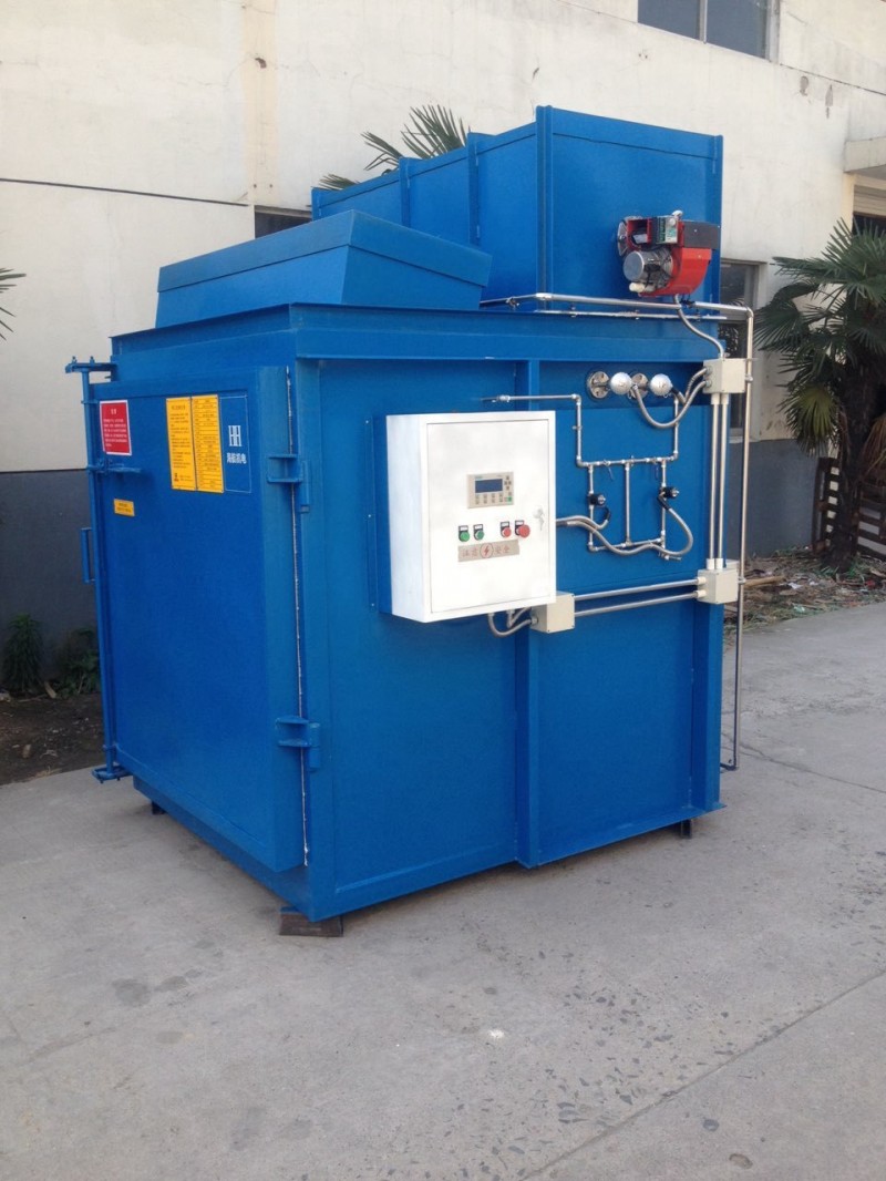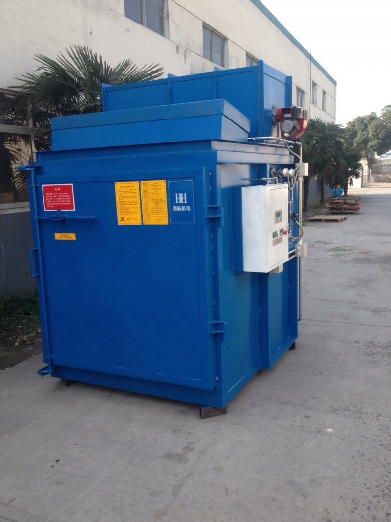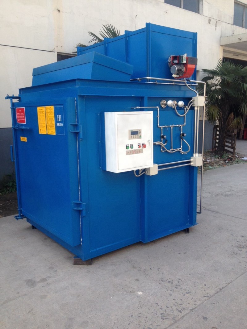 热洁炉能高效、安全地洗涤在涂层喷嘴等金属件上附着的化学品。利用高分子聚合物高于300度隔绝空气可裂解憔化,高于400度在有少量空气可完全氧化的特性,先将粘有高分子污物的工件加热到400度(根据工艺要求拟定),使工件上数量较多的高分子聚合物熔化后流淌到炉膛下部的收集容器内,然后再将炉温升到400度,并通入少量新鲜空气,使剩余的聚合物充分氧化,生成的二氧化碳,经水喷淋后通过水环式抽吸,和水一起排出炉外。