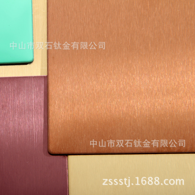• 主要产品:钛金色,香槟金,淡青铜,日本金,锆金,玫瑰金,玫瑰红,古铜,红铜,黑灰,深黑,紫金,深褐色,宝石蓝,茶色,炫彩,不锈钢本色,咖啡色等…