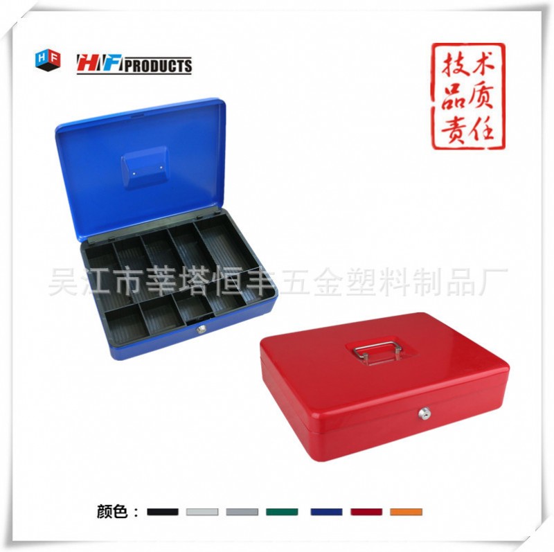 吴江莘塔恒丰五金塑料制品厂位于中国吴江,工厂创建于1994年,我们工厂是一家集生产、研发、销售和国际贸易为一体的民营企业。工厂面积59000平方米,主要生产现金盒、金属办公用品、医药急救箱、工具箱、金属烟筒、信报箱、钥匙箱、文件箱、保险箱等各种规格的金属和塑料制品。工厂每年有可以装150个40’柜以上的数量的产品在销往世界各地。更多信息欢迎浏览我们的网站http://www.hotelsafe.net.cn供优质现金盒 钱箱 钱盒 收纳盒 带锁铁盒 HF-M370B 厂家直销