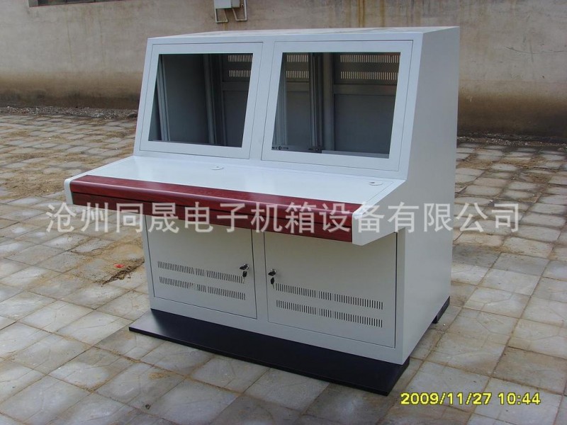 2. 这儿种产品可以专用于放置液晶显示器,可视性好,高度、角度均可调节,内部设备可选配抽拉托盘,表面静电喷塑处理,方便使用,简洁大方,最佳效果的人机工程学设计,能最大的满足操作人员的方便舒适度;可根据用户要求配置通风散热的风机及各种面板、台面、附件等。