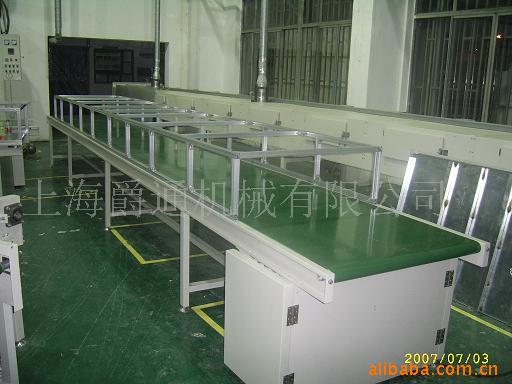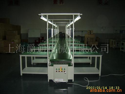 | 皮带输送机使用与电子产品的装配现场、本设备主架采用钢构、表面喷塑处理、皮带采用进口、动力采用台湾品牌;线体结构及使用效果根据客户要求定制 |