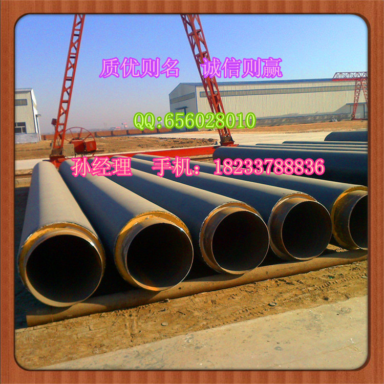 - 我公司用引进的高压成套聚氨酯发泡设备生产的三位一体直埋保温管整体性能优良、严格执行钢管外表面抛丸除锈处理和外护管内表面电晕处理工艺,进一步提高保温管的粘接性能。保温层材料为密度60kg/m3至80kg/m3的硬质聚氨酯泡沫,充分添满钢管与套管之间的间隙,并具有一定的粘接强度,使钢管、外套管及保温层三者之间形成一个牢固的整体。聚氨酯泡沫具有良好的机械性能和绝热性能,通常情况下可耐温120℃,通过改性或与其它隔热材料组合可耐温180℃。预制保温管较之传统的各类保温管材具有十分突出的优点。