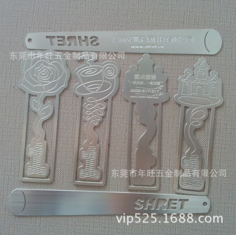 【品名】金属书签 五金书夹 不锈钢书签 铜书签 镂空书签 腐蚀书签 金属书立 书隔 冲压书签 滴油书签 喷漆书签 上色书签 丝印书签 礼品书签
