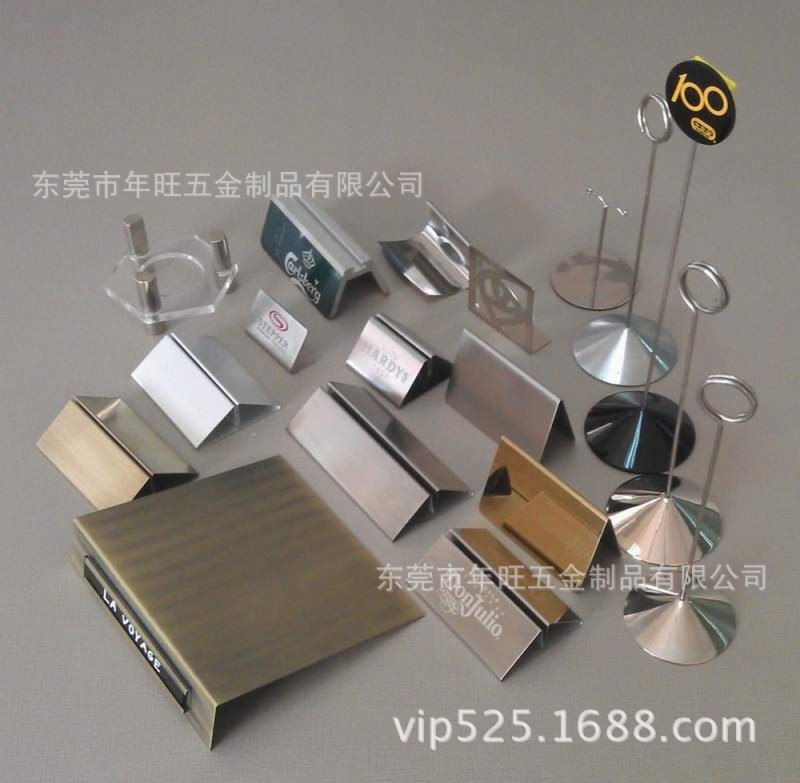 台卡指示牌 金属餐牌夹,酒水牌,五金菜单牌支架,不锈钢餐牌,铝合金餐牌,铜餐牌支架,铁菜单架,五金点菜单支架,餐牌夹子,铝合金台历架,锌合金台历支架,金属桌面展架,不锈钢桌座,名片夹,资料夹,线艺夹,餐牌底座,留座台,台签,台卡,台座,标示牌,桌牌,桌卡,金属酒水牌,产品广告牌,酒水单,点菜单,夹宣传牌桌摆,酒楼酒水牌,台卡,酒店台卡,餐牌,桌面酒水牌,酒店专用桌面提示卡,指示牌,广告酒水台座,桌面菜谱展示牌,金属台卡,酒店金属用品,金属展示支架等;可根据客户要求订做亚克力PP牌板。不锈钢台卡,金属台卡,酒店台卡,桌牌台卡,三角台卡,广告台卡,铝合金台卡,强磁台卡,金属餐牌夹,不锈钢酒水牌,旋转酒水牌,高档酒水牌,三角酒水牌,酒店酒水牌,酒吧酒水牌,折弯酒水牌,金属台牌,餐牌,台座,台卡,菜单牌,餐桌牌,金属酒牌,台牌等。