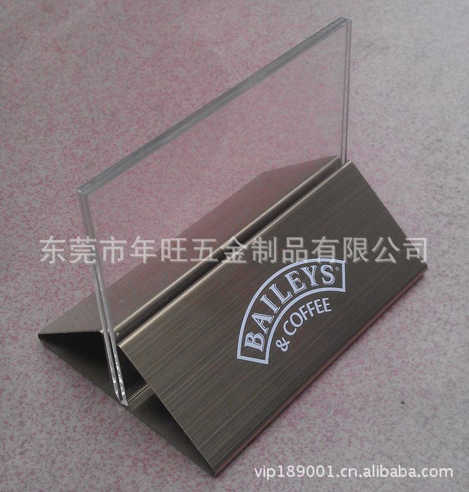 2、金属展示架,五金展览牌,金属工艺支架,珠宝展示牌,电脑展示托架,不锈钢展示架,铝合金展示牌,铜电镀支架,名片职位牌,号码牌,广告牌,海报架,迎宾牌,指示牌,资料架,台号牌,房价牌,告示牌,礼宾牌,门牌,商场大厅展示牌支架。