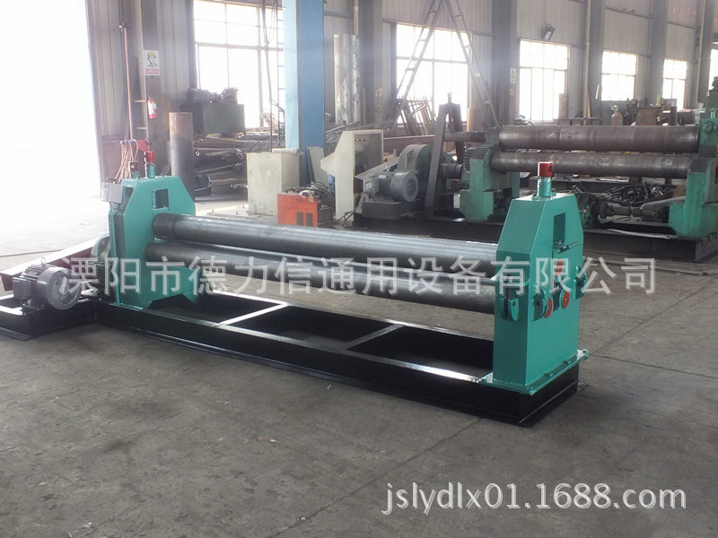 2、本机为对称上调三辊式,两支下辊固定在支架上,为主动辊,上辊为可升降调节的被动辊,以适应工件卷制工艺的需要。