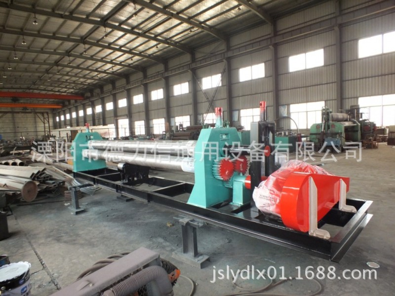 2、本机为对称上调三辊式,两支下辊固定在支架上,为主动辊,上辊为可升降调节的被动辊,以适应工件卷制工艺的需要。