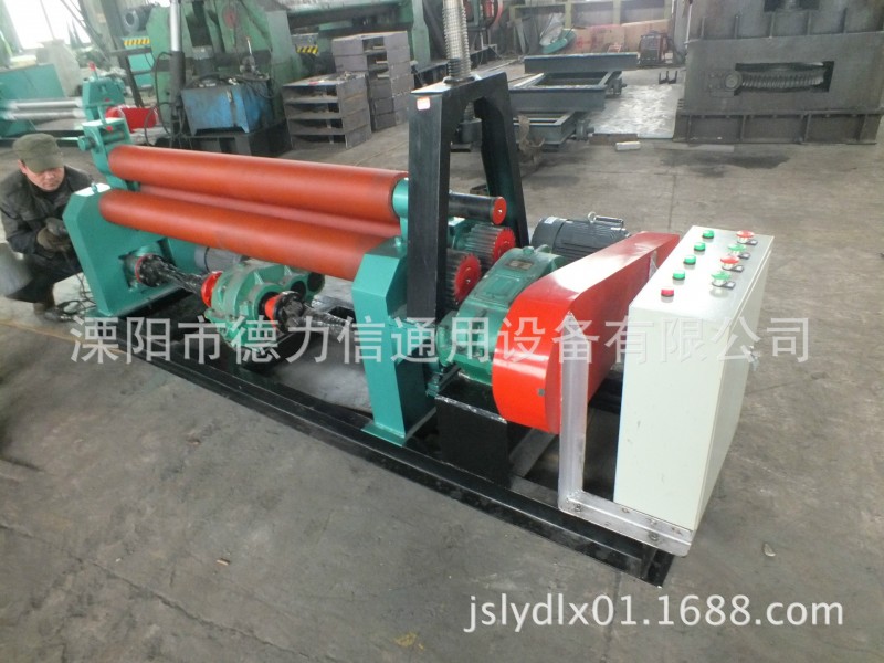 2、本机为对称上调三辊式,两支下辊固定在支架上,为主动辊,上辊为可升降调节的被动辊,以适应工件卷制工艺的需要。