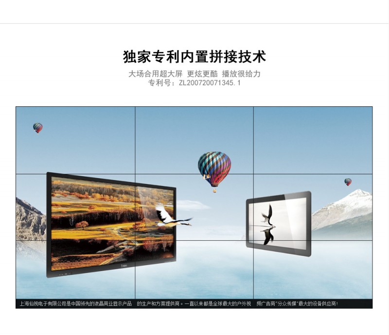 基于上述的要求以及客户自身需求,向客户提供液晶拼接大屏幕显示系统方案,本方案将最简便的拼接技术、多屏图像处理技术、信号切换技术应用综合为一体,形成一个拥有高亮度、高清晰度、高智能化控制、操作方法先进的大屏幕显示系统。
