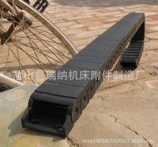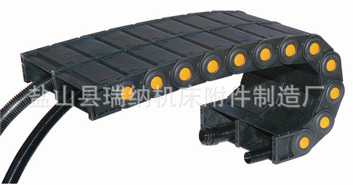 适合于使用在往复运动的场合,能够对内置的电缆、油管、气管、水管等起到牵引和保护作用,拖链每节都能打开,便于安装和维修。运动时噪音低、耐磨、可高速运动。拖链已被广泛应用于数控机床、电子设备、石材机械、玻璃机械、门窗机械、注塑机、机械手、起重运输设备、自动化仓库等。