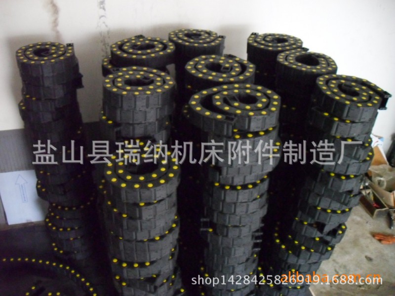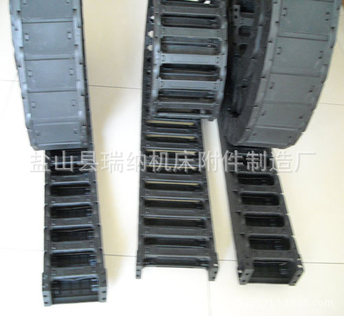 适合于使用在往复运动的场合,能够对内置的电缆、油管、气管、水管等起到牵引和保护作用,拖链每节都能打开,便于安装和维修。运动时噪音低、耐磨、可高速运动。拖链已被广泛应用于数控机床、电子设备、石材机械、玻璃机械、门窗机械、注塑机、机械手、起重运输设备、自动化仓库等。