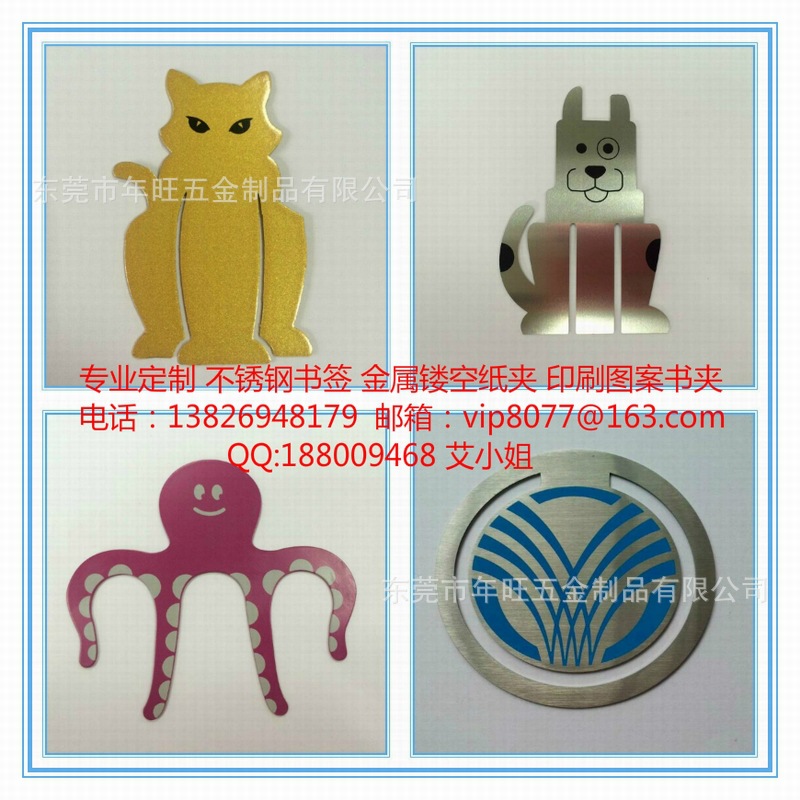 1、金属书签,书立,五金书签书立,不锈钢书签,铝合金书签,黄铜书签,锌合金书签,五金冲压书签,冲压不锈钢书签,冲压铜书签,腐蚀不锈钢书签,蚀刻铜书签,镂空书签,图案书签,心形书签,动物造型书签,印刷书签,滴胶书签,贴纸书签,办公文具书签,电镀书签,电泳书签,礼品书签,精品书签,广告礼品书签,商务礼品书签,高档纸夹,金属书夹,弹性书签,五金折弯书立。