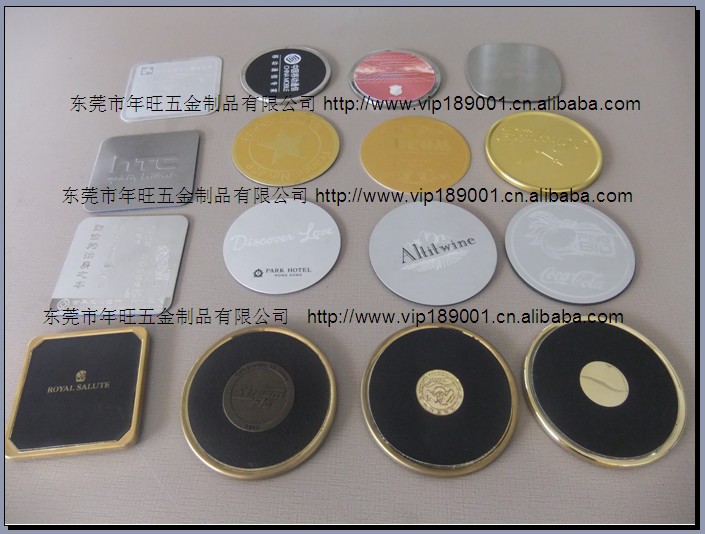 2金属贴皮杯垫,EVA杯垫,咖啡垫,酒杯垫,餐具垫,防滑垫,LOGO杯垫,广告促销杯垫礼品,赠送礼品杯垫,表面效果有抛光,氧化,镭雕,丝印,蚀刻,CD纹,拉丝,喷砂,喷漆等