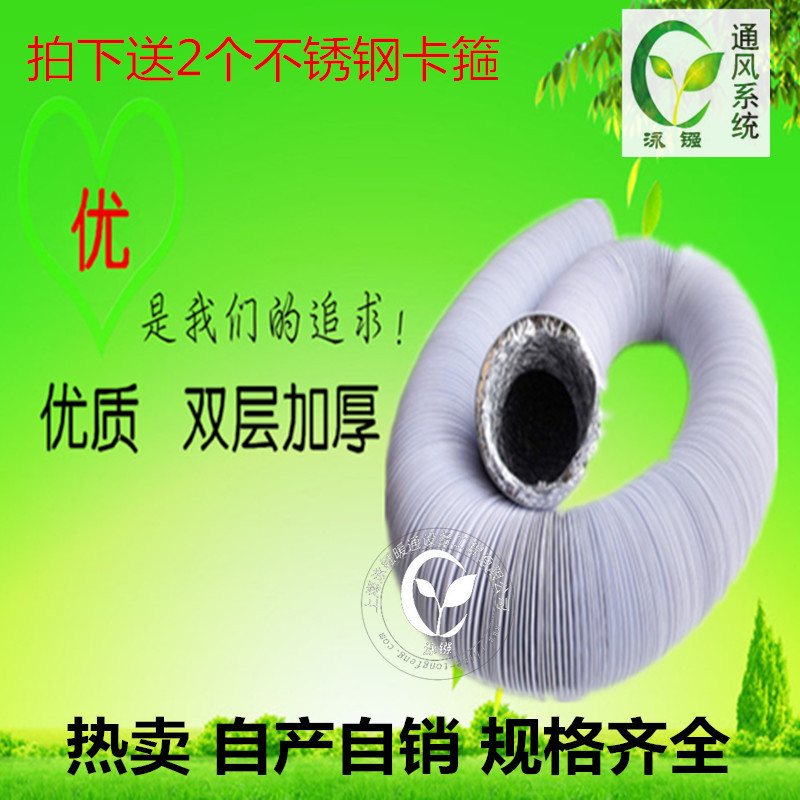 产品特性:双层复合金属铝箔软管,内以螺旋形高张力钢丝支撑, 伸缩性强,拉直后自持性好,阻力较小,清洁卫生,不污染所通气体,强度高,抗腐蚀性强,不漏风,经久耐用,安装过程可任意布置风管走向,对装潢吊顶无影响。可直接安装在浴霸/换气扇/送风机的出风口。 另有80mm,100mm,110mm,125mm,150mm,160-175mm,200mm,300mm,400mm,500mm多种可选。一根可拉伸至8-9米。技术参数