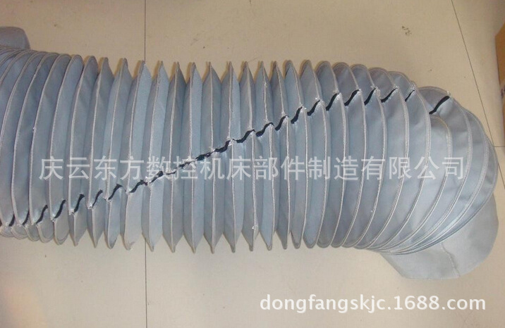 帆布伸缩保护套按加工方式,同时也考虑到不同材料适于不同加工工艺的因素,可分为两形式。 一种是钢圈支撑的丝杠防护罩,此种护罩采用多种面料,内有坚硬的钢丝圈支撑、能在高温110℃、低温-40℃之间正常工作。可有效的防尘、防水、防油、防乳剂和化学药品,此护罩具有外形工整,不易变形的特点,基于它的严密,坚挺,此护罩且可用于众多机械的通风、除尘等。本产品的灵活不但在材料可选,更在于它可以根据的具体要求来确定所需直径和长度。 另一种就是缝制丝杠防护罩,圆形丝杠防护罩是经冲压的圆片缝制成,相临的两个内边,两个外边缝合在一起,通过缝制就可以达到比较好的外形稳定及水平方向上的牢固。材料可根据工作环境的不同有多种选择。