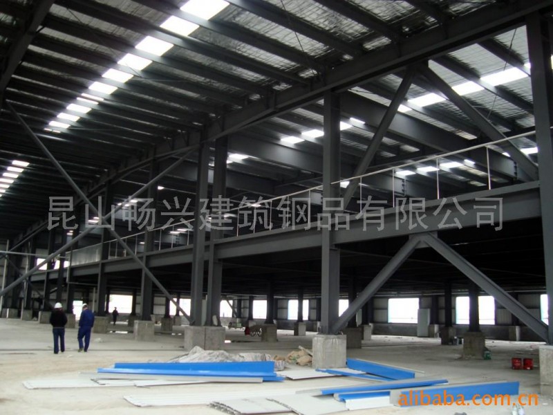 昆山畅兴建筑钢品有限公司坐落在江苏省苏州市(昆山)玉山镇吴淞江工业园西区(大道),中华园西路2028号,公司集各类钢结构,彩色压型钢板,防腐防火等项目的设计、制作、安装、施工、运输于一体,拥有一流全套的机械加工检测设备(数控/多头火焰直条切割机、H型钢组立机、龙门式自动焊接机、冀缘矫正机、辊道通过式抛丸清理机、16m/m液压轧式剪板机、NBC逆盘式CO2气体保护焊机、无损探伤仪等),年生产钢结构能力为6000吨。本公司已先后为多家著名钢结构行业(昆山华胤——台资、昆山中钢——台资、上海美联——美资、浦项制铁(世界500强)——韩资等加工并承接工程安装,有国外出口、施工经验。具国家建设施工钢结构专业资质。